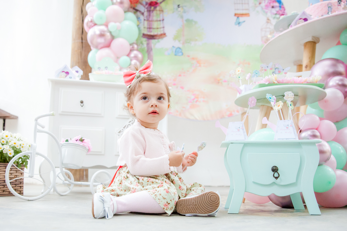 Uma fadinha no meio do jardim florido, tão linda, tão delicada. Encantadora.